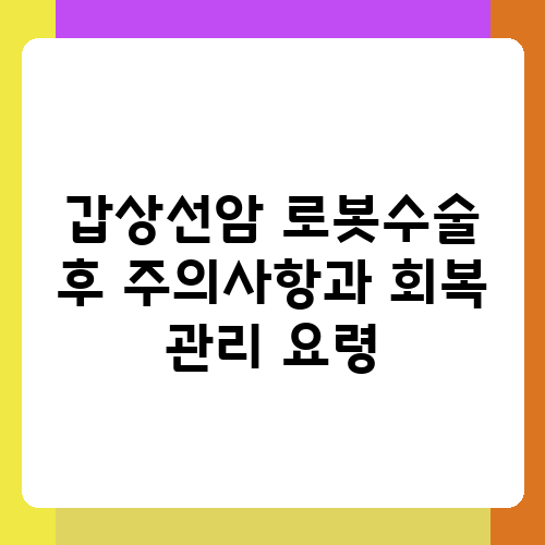 갑상선암 수술, 특히 로봇수술을 받으신 분들은 수술 후 관리가 얼마나 중요한지 아실 거예요. 섬세한 로봇수술이라고 해도 수술 후 회복 과정은 쉽지 않고, 꼼꼼한 관리가 필요하답니다. 이 글에서는 갑상선암 로봇수술 후 주의사항과 회복 관리 요령을 자세히 알려드려 더 건강하고 빠른 회복을 도와드리고자 합니다. 함께 건강한 내일을 만들어가요!
