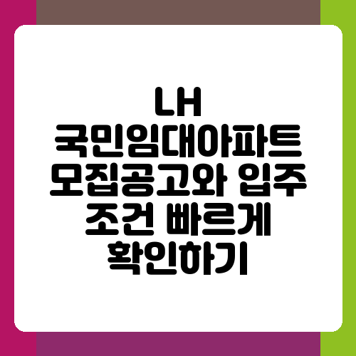 LH 국민임대아파트에 관심 있으신가요? 내 집 마련의 꿈을 이루기 위한 첫걸음을 떼는 건 정말 설레지만, 복잡한 절차와 조건 때문에 막막하게 느껴지기도 합니다. 하지만 걱정하지 마세요! 이 글에서는 LH 국민임대아파트 모집 공고를 빠르게 확인하고 입주 조건까지 꼼꼼하게 살펴볼 수 있도록 자세하게 알려드릴게요. 함께 차근차근 알아보면 어렵지 않아요.