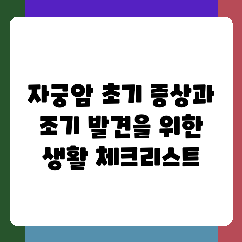 자궁암은 조기에 발견하면 치료율이 매우 높은 질병입니다. 하지만 초기 증상이 미미하거나 다른 질병과 혼동될 수 있어 조기 발견이 어려운 경우가 많다고 해요. 건강한 생활 습관과 정기적인 검진을 통해 자궁암을 예방하고 조기에 발견하는 것이 중요합니다. 오늘은 자궁암 초기 증상과 조기 발견을 위한 생활 체크리스트를 자세하게 알려드리도록 하겠습니다. 건강을 챙기는 것은 바로 나 자신을 위한 가장 큰 투자라고 생각합니다.