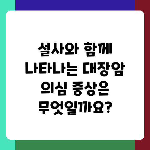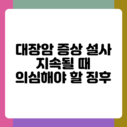 설사는 누구나 겪을 수 있는 흔한 증상이지만, 만약 설사가 오랫동안 지속되거나 다른 증상과 함께 나타난다면 대장암을 의심해 봐야 합니다. 대장암은 조기에 발견하면 치료율이 높은 질병이기에, 평소 건강 관리에 신경 쓰는 것이 무엇보다 중요하다는 생각이 드네요. 이 글에서는 설사가 지속될 때 대장암을 의심해야 할 징후들을 자세히 알아보고, 건강을 지키는 데 도움이 되는 정보를 제공하고자 합니다.