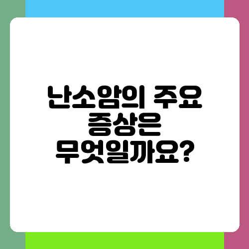 난소암은 초기에는 특별한 증상이 없어 자각하기 어렵다고 합니다. 복부 팽만감이나 불편감이 느껴질 수 있지만, 단순 소화불량이나 과민성 대장 증후군으로 오인하기 쉬워요. 하지만 질병이 진행됨에 따라 복부 팽만감이 심해지고, 소화불량이나 변비, 메스꺼움, 구토 등의 증상이 나타날 수 있습니다. 또한, 배뇨 횟수가 잦아지거나 소변을 볼 때 통증이 있을 수도 있고요. 체중 감소, 만성적인 피로감, 생리불순 등의 증상도 난소암의 징후일 수 있습니다. 물론, 이러한 증상들은 다른 질병에서도 나타날 수 있기 때문에, 이러한 증상이 지속되거나 심해진다면 반드시 병원을 찾아 정확한 진단을 받아보는 것이 중요합니다. 평소 몸의 변화에 민감하게 반응하고, 이상 증상이 나타나면 즉시 병원을 방문하는 습관을 들이도록 해요. 자신의 몸을 잘 아는 것이 최고의 예방책이라고 생각합니다.