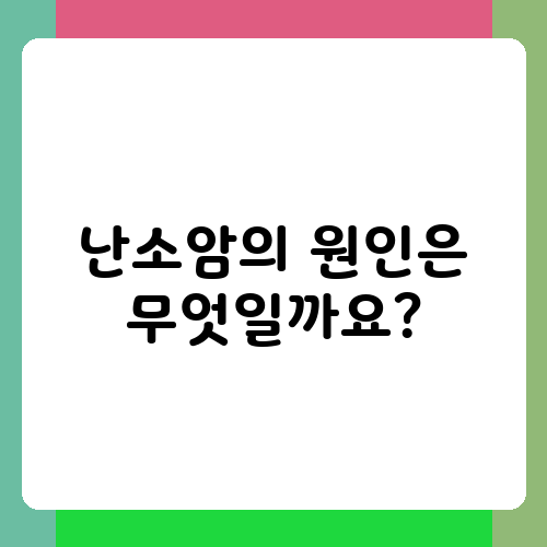 난소암의 정확한 원인은 아직 밝혀지지 않았지만, 여러 가지 위험 요소들이 알려져 있습니다. 유전적인 요인, 가족력, 호르몬 불균형, 불임 치료, 비만, 흡연 등이 난소암 발생 위험을 높이는 요인으로 알려져 있습니다. 유전자 돌연변이, 특히 BRCA1과 BRCA2 유전자 돌연변이는 난소암 발생 위험을 크게 증가시킬 수 있다고 합니다. 가족력이 있는 경우 정기적인 검진을 통해 조기에 암을 발견하는 것이 매우 중요하며, 의사와 상담하여 자신에게 맞는 예방 전략을 세우는 것이 좋습니다. 생활 습관 개선을 통해 난소암 위험을 줄일 수도 있습니다. 금연, 적절한 체중 유지, 균형 잡힌 식단 등은 난소암 예방에 도움이 될 수 있습니다. 건강한 생활 습관은 난소암뿐만 아니라 다른 질병 예방에도 도움이 된다는 점을 기억하세요.